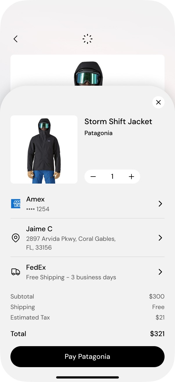 I used an AI generated color palette to bring the experience to life and populated the details with a product from the Patagonia website.