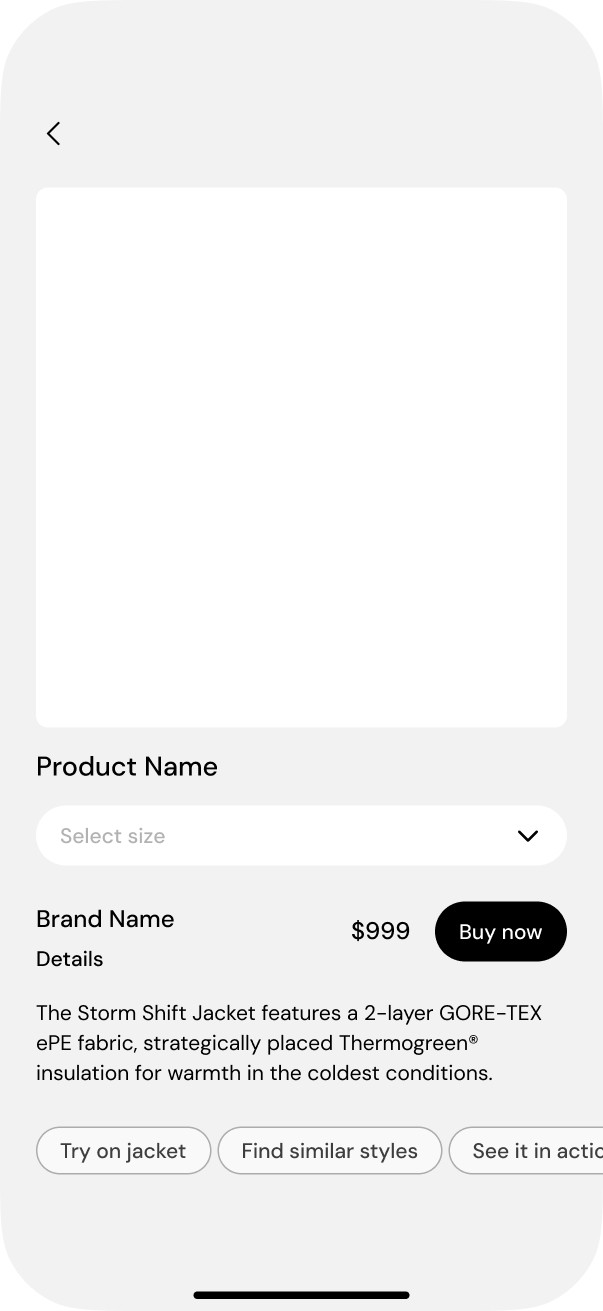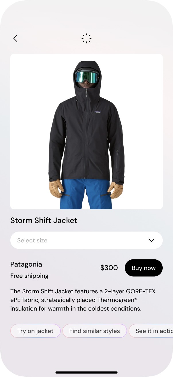 Prompt chips at the product stage could help ease buyer friction by giving users quick ways to explore visuals or specs through pre-prompted AI.