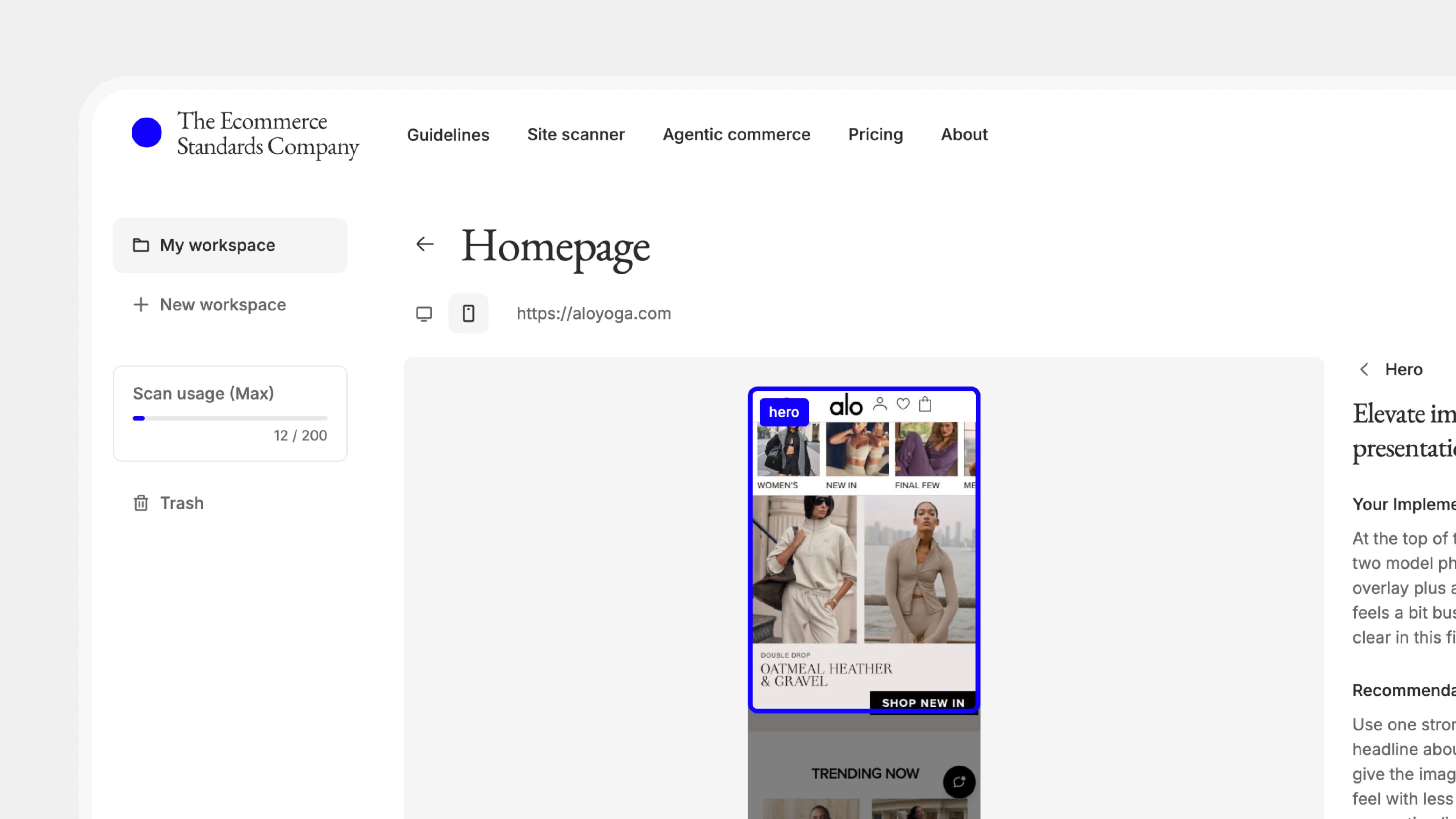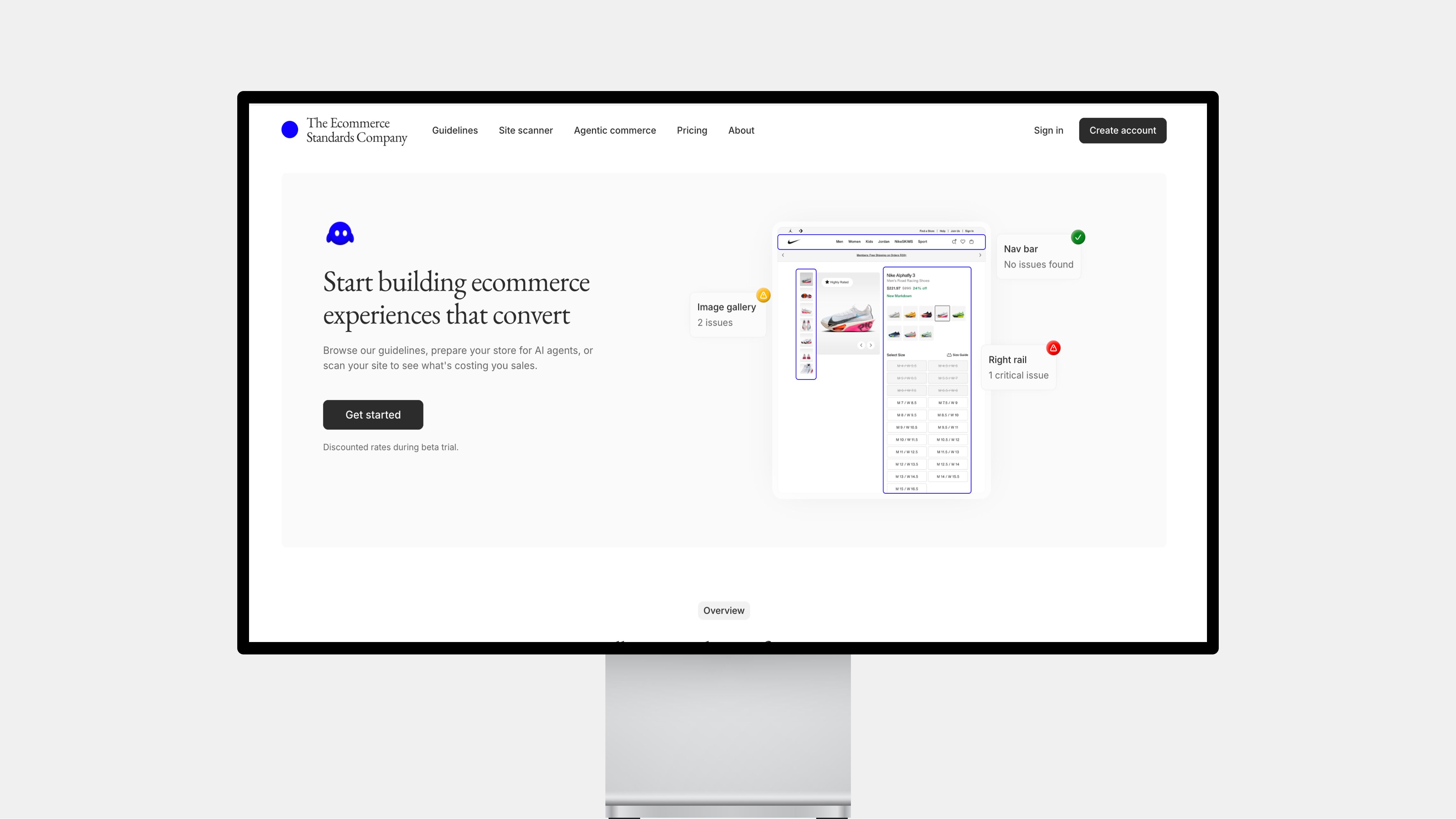 The Ecommerce Standards Company started with a simple idea: help merchants deliver best-in-class ecommerce experiences. I designed and built the platform from the ground up, starting with a collection of research-backed guidelines that has since grown into a suite of AI-powered features serving both sides of the modern storefront: